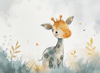Plakat z serii wnętrza zatytułowany Mała Żyrafka. Uroczy plakat przedstawia młodą żyrafę o łagodnym spojrzeniu, wyłaniającą się z akwarelowej mgły pastelowych barw. Delikatne krople farby i subtelne linie tworzą atmosferę czystości i spokoju, nadając dziełu ciepły i relaksujący nastrój. Ten plakat, emanujący dziecięcą niewinnością i ciekawością świata, będzie idealnym dodatkiem do przestrzeni dziecięcej, takiej jak pokoje maluchów, przedszkola lub miejsca oczekiwania w placówkach pediatrycznych, zachęcając małych i dużych do marzeń i odkrywania piękna przyrody.