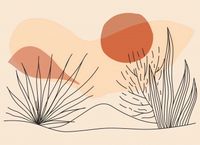 Plakat z serii boho zatytułowany Miękka Roślinność. Plakat przedstawia proste, lecz eleganckie rośliny pustynne na tle abstrakcyjnych, miękkich form i kolorów. Całość kompozycji opiera się na spokojnych odcieniach beżu, brązu oraz głębokiego terrakoty, co przywodzi na myśl ciepło i suchość pustynnego krajobrazu. Ten plakat świetnie sprawdzi się w wnętrzach o neutralnej kolorystyce, dodając im charakteru i ciepła. Idealnie nadaje się do salonu, przestrzeni wypoczynkowych lub biura, gdzie wprowadzi elementy natury i harmonii.