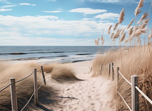 Plakat z serii pejzaże zatytułowany Nadmorski Most to tytuł tej zapierającej dech w piersiach ilustracji, która przemawia do duszy miłośnika morza. Delikatne trawy morskie tańczą w rytmie przybrzeżnego wiatru, a spokojne fale delikatnie docierają do złocistego piasku, tworząc melodię naturalnego spokoju. Nieskazitelnie błękitne niebo przechodzące w pastelowe odcienie na horyzoncie dodaje głębi i przestrzeni, tworząc plakat idealny do umieszczenia w przestrzeniach, które celebrują ciszę i kontemplację. Ten plakat będzie wyjątkowym dodatkiem do każdej plażowej chaty, salonu nadmorskiego domu, a nawet biura, przypominając o nieskończonej przestrzeni i wolności, jaką oferuje morze.