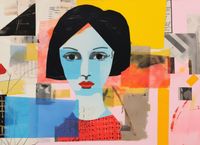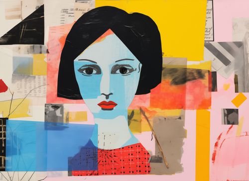 Plakat z serii abstrakcja zatytułowany Prześwit Wzroku przedstawia abstrakcyjny portret kobiety, skomponowany z różnorodnych elementów kolażu. Dynamiczna kompozycja łączy w sobie wyraziste kolory i tekstury, z fragmentami tekstu, geometrycznymi kształtami i abstrakcyjnymi formami. Centralną figurą jest twarz kobiety o prostych, ale silnych rysach, z kontrastującymi niebieską cerą, czarnymi włosami i czerwonymi ustami, co nadaje jej wyrazistości i głębi. Tło składa się z żywych żółtych i pomarańczowych plam, przeplatających się z chłodnymi błękitami i neutralnymi odcieniami, tworząc wrażenie różnorodności i dynamizmu współczesnego życia. Plakat ten może stanowić inspirujący element dekoracyjny w nowoczesnych przestrzeniach mieszkalnych, galeriach sztuki lub kreatywnych miejscach pracy, stymulujący wyobraźnię i refleksję nad naturą sztuki.