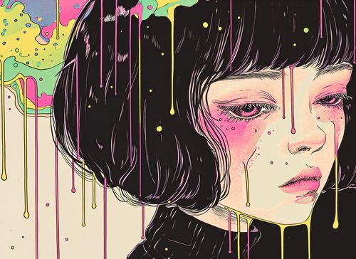 Plakat z serii pop art zatytułowany Strugi Kolorów. Ten hipnotyzujący plakat przedstawia wizerunek młodej kobiety z przymkniętymi oczami, jej twarz zdaje się być na granicy snu i jawy. Nad nią i wokół niej płyną strugi kolorów, które wydają się rozlewać jak ciecz, tworząc atmosferę oniryczną i abstrakcyjną. Kontrast między realistyczną twarzą a surrealistycznym tłem podkreśla emocjonalną głębię i złożoność ludzkich doświadczeń.Plakat ten doskonale uzupełni przestrzeń pełną kreatywności i wyobraźni, taką jak pracownie artystyczne, kawiarnie, czy nawet nowoczesne pokoje młodzieżowe. Może również stanowić niebanalny akcent w pomieszczeniach terapeutycznych lub coachingowych, gdzie rozmowa na temat emocji i wewnętrznego świata jest na porządku dziennym.