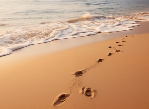 Plakat z serii pejzaże zatytułowany Szepty Fal przedstawia obraz, który zaprasza widza do kontemplacji i refleksji. Delikatne ślady stóp wskazują na cichą obecność, a przytłumione szumy fal i miękki piasek podkreślają uczucie spokoju. Rozmyte kolory zachodu słońca, które malują niebo na niemal nierzeczywiste odcienie pomarańczy i błękitu, wydają się być synonimem spokojnego zakończenia dnia. Ta praca idealnie wkomponuje się w estetykę współczesnych salonów lub pokoi wypoczynkowych, które cenią sobie minimalizm i naturę, a także będzie znakomitym wyborem dla przestrzeni wellness i spa, gdzie harmonia i spokój są kluczowymi elementami.