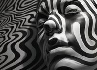 Plakat z serii abstrakcja zatytułowany Wtop Się We Mnie. Ten monochromatyczny plakat przedstawia zbliżenie na twarz kobiety, której skórę zdobią hipnotyzujące, czarno-białe wzory przypominające zebry. Skontrastowane linie zygzakowato przecinają płaszczyznę obrazu, tworząc złudzenie ruchu i głębi. Plakat jest przykładem wyrafinowanego połączenia sztuki portretowej z abstrakcyjnym designem, idealny do pomieszczeń o minimalistycznym lub nowoczesnym wnętrzu, takich jak galerie sztuki, nowoczesne biura, a także jako oryginalny akcent w domowym salonie. Jego unikalny styl przyciąga wzrok i zmusza do refleksji, stanowiąc idealny temat do rozmów w przestrzeniach społecznych.