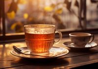 Plakat z serii wnętrza zatytułowany Moment Codzienności. Urokliwy obraz dwóch filiżanek herbaty, z których jedna uchwycona jest w chwili, gdy promienie porannego słońca przenikają przez jej bursztynową zawartość. Ciepłe światło i delikatna para unosząca się nad napojem emanuje atmosferę spokoju i przyjemności z porannego rytuału. Idealny do kuchni lub jadalni, aby dodać uczucie ciepła i domowego komfortu, a także doskonały jako prezent dla każdego miłośnika herbaty lub momentów refleksji.