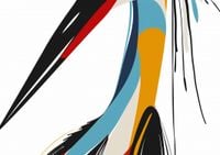 Plakat z serii abstrakcja zatytułowany Portret to abstrakcyjne przedstawienie bociana, w stylu modernistycznej grafiki. Ptak jest przedstawiony przy użyciu odważnych, czystych linii i jasnych, kontrastujących barw, które łączą się w dynamiczną i nowoczesną kompozycję. Linie tworzą zarys ptaka, a kolorowe płaszczyzny - od czerwieni, poprzez błękity, aż po odcienie żółci i czerni - nadają głębi i charakteru jego postaci. Akcenty kolorystyczne, jak czerwone pióro czy niebieski akcent na szyi, dodają dziełu energii i wyrazistości. Plakat jest żywy i pełen charakteru, idealny do wnętrz, które szukają silnego wizualnego akcentu, takich jak współczesne salony, galerie sztuki, czy przestrzenie kreatywne.