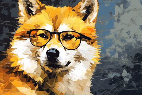 Plakat z serii pop art zatytułowany Intelektualny Psiak - wyrafinowany portret psa wykonany w stylu low poly, który jest artystycznym połączeniem nowoczesnej grafiki i dzikiego ducha natury. Pomarańczowe, białe i czarne wielokąty tworzą wizerunek psa z charakterystycznymi okularami, nadając mu wygląd pełen inteligencji i wyrafinowania. Mroczne tło z abstrakcyjnymi elementami dodaje głębi i kontrastu, wyróżniając głównego bohatera. Ten plakat to idealne odzwierciedlenie połączenia natury z kulturą miejską, świetnie nadające się do dekoracji nowoczesnych przestrzeni takich jak kawiarnie, księgarnie, czy domowe biura osób ceniących unikalny design i przyrodnicze motywy.