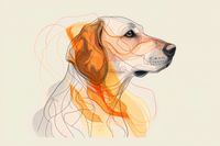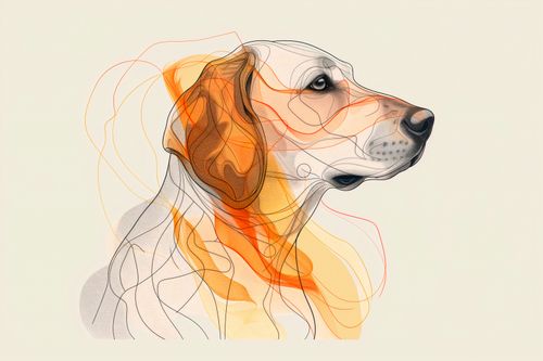 Plakat z serii abstrakcja zatytułowany Kontur Profilowego. Plakat przedstawia portret psa w stylu artystycznym, z subtelnie zaznaczonymi, ale wyraźnymi cechami. Kompozycja łączy realistyczne detale takie jak oczy, nos i uszy z abstrakcyjnymi, płynnymi liniami i plamami kolorów, które tworzą wrażenie ruchu i głębi. Dominujące kolory to odcienie pomarańczowego, żółtego i brązu, które idealnie oddają ciepło i przyjazny charakter zwierzęcia. Tło w neutralnym, pastelowym odcieniu podkreśla i równoważy bardziej dynamiczne elementy grafiki. Plakat emanuje spokojem i może wzbudzać pozytywne emocje, będąc jednocześnie wyrafinowanym, artystycznym przedstawieniem psa, który może być ulubieńcem rodziny lub po prostu przykuwającym uwagę elementem dekoracyjnym.