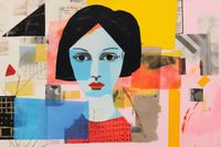 Plakat z serii abstrakcja zatytułowany Prześwit Wzroku przedstawia abstrakcyjny portret kobiety, skomponowany z różnorodnych elementów kolażu. Dynamiczna kompozycja łączy w sobie wyraziste kolory i tekstury, z fragmentami tekstu, geometrycznymi kształtami i abstrakcyjnymi formami. Centralną figurą jest twarz kobiety o prostych, ale silnych rysach, z kontrastującymi niebieską cerą, czarnymi włosami i czerwonymi ustami, co nadaje jej wyrazistości i głębi. Tło składa się z żywych żółtych i pomarańczowych plam, przeplatających się z chłodnymi błękitami i neutralnymi odcieniami, tworząc wrażenie różnorodności i dynamizmu współczesnego życia. Plakat ten może stanowić inspirujący element dekoracyjny w nowoczesnych przestrzeniach mieszkalnych, galeriach sztuki lub kreatywnych miejscach pracy, stymulujący wyobraźnię i refleksję nad naturą sztuki.