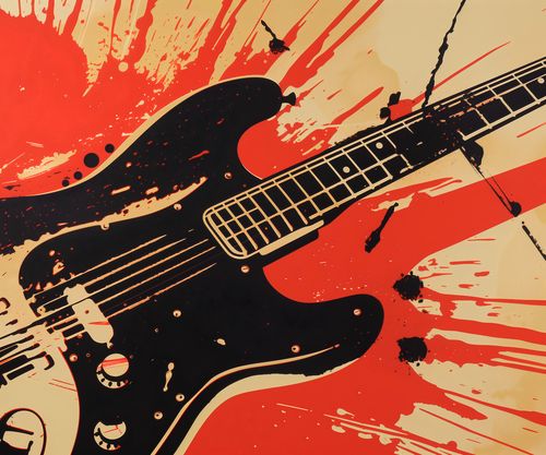 Plakat z serii abstrakcja zatytułowany Gitara Elektryczna. Przedstawia dynamiczny, artystyczny obraz gitary elektrycznej zanurzonej w energicznych plamach i rozpryskach farby. Tło w intensywnych odcieniach czerwieni i pomarańczy tworzy silny kontrast z czernią instrumentu, co nadaje dziełu wyrazisty i mocny charakter. Detale gitary, jak przetworniki, mostek i struny, są przedstawione z wyjątkową precyzją, podkreślając jej ikoniczną formę. Rozpryski farby dodają wrażenia ruchu i dzikiego tempa, jakie często towarzyszą muzyce rockowej. Ten plakat oddaje ducha muzyki rockowej i mogłby świetnie komponować się w przestrzeniach, które celebrują muzykę i kreatywność, takich jak sale prób, studia nagraniowe, pokoje młodzieżowe lub kawiarnie i bary z muzyką na żywo.