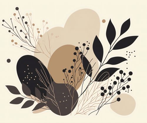 Plakat z serii minimalistyczne zatytułowany HarmonijkaPrzyrody. Ta grafika to estetyczna kompozycja abstrakcyjnych, organicznych kształtów i delikatnych motywów florystycznych w tonacji ziemi. Wykorzystanie różnych odcieni brązu, beżu oraz głębokiej czerni tworzy spokojną, ale i wyrafinowaną paletę barw. Kontrastowe, ciemne elementy florystyczne są pięknie zrównoważone przez jasne tło, nadając całości uczucie lekkości i elegancji.Jest to idealny wybór dla osób, które szukają subtelnego, ale wyrazistego elementu dekoracyjnego do swojego domu lub biura.