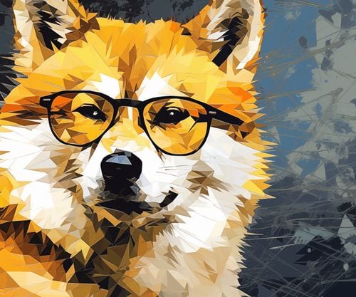 Plakat z serii pop art zatytułowany Intelektualny Psiak - wyrafinowany portret psa wykonany w stylu low poly, który jest artystycznym połączeniem nowoczesnej grafiki i dzikiego ducha natury. Pomarańczowe, białe i czarne wielokąty tworzą wizerunek psa z charakterystycznymi okularami, nadając mu wygląd pełen inteligencji i wyrafinowania. Mroczne tło z abstrakcyjnymi elementami dodaje głębi i kontrastu, wyróżniając głównego bohatera. Ten plakat to idealne odzwierciedlenie połączenia natury z kulturą miejską, świetnie nadające się do dekoracji nowoczesnych przestrzeni takich jak kawiarnie, księgarnie, czy domowe biura osób ceniących unikalny design i przyrodnicze motywy.