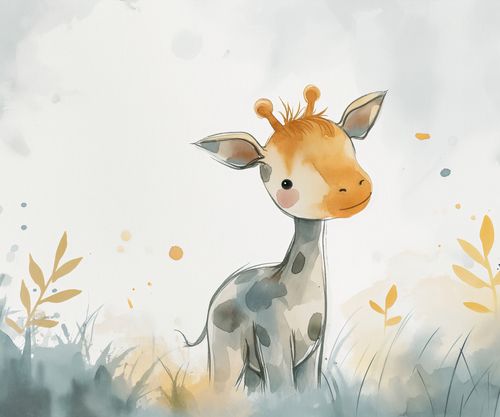 Plakat z serii wnętrza zatytułowany Mała Żyrafka. Uroczy plakat przedstawia młodą żyrafę o łagodnym spojrzeniu, wyłaniającą się z akwarelowej mgły pastelowych barw. Delikatne krople farby i subtelne linie tworzą atmosferę czystości i spokoju, nadając dziełu ciepły i relaksujący nastrój. Ten plakat, emanujący dziecięcą niewinnością i ciekawością świata, będzie idealnym dodatkiem do przestrzeni dziecięcej, takiej jak pokoje maluchów, przedszkola lub miejsca oczekiwania w placówkach pediatrycznych, zachęcając małych i dużych do marzeń i odkrywania piękna przyrody.