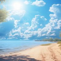 Plakat z serii pejzaże, zatytułowany Letni Dzień. Jasne słońce świecące przez delikatne chmury na błękitnym niebie, plaża z miękkim, złocistym piaskiem oraz przybrzeżne trawy łagodnie kołysane przez letni wiatr tworzą obraz pełen ciepła i spokoju. Ten pejzaż przynosi uczucie relaksu i beztroski, idealne dla tych, którzy chcą przynieść do swojego domu atmosferę wakacyjnego odpoczynku. Doskonale nadaje się do salonów, przestrzeni wypoczynkowych oraz pomieszczeń, gdzie chcemy wprowadzić elementy natury i świeżości.