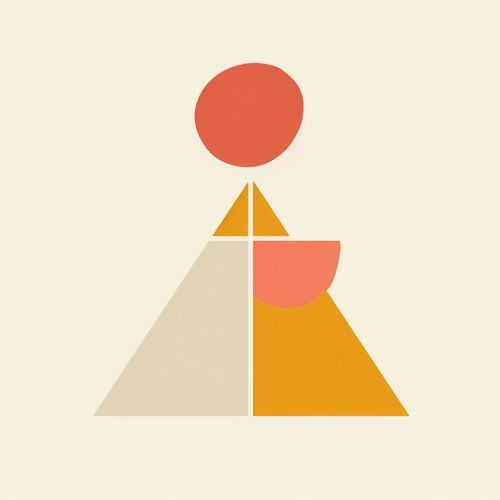 Plakat z serii boho zatytułowany Piramida Równowagi.Na plakacie widnieje uproszczona, ale wyrazista kompozycja geometryczna, składająca się z trójkąta podzielonego na mniejsze sekcje, półkola oraz kółka na szczycie. Kolorystyka utrzymana w pastelowych odcieniach beżu, pomarańczy i czerwieni, wprowadza poczucie ciepła i spokoju.Dzieło idealnie wpisuje się w minimalistyczne i nowoczesne przestrzenie, stanowiąc zarazem element medytacyjny jak i dekoracyjny. Dopełnieniem mogą być proste, drewniane ramy, które podkreślą naturalność prezentowanej formy. Jest to plakat, który może znaleźć swoje miejsce w domowym biurze, salonie, a nawet w przestrzeniach komercyjnych, takich jak kawiarnie lub poczekalnie.