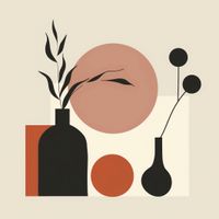 Plakat z serii boho zatytułowany Stół Roślin. Plakat przedstawia stilizowaną kompozycję abstrakcyjnych form, które mogą przypominać wazony z roślinami. Czarny, silnie zarysowany wazon po lewej stronie kontrastuje z bardziej płynnymi kształtami i ciepłymi odcieniami czerwieni i beżu, tworząc zrównoważoną, ale dynamiczną scenę. Rośliny są zredukowane do najprostszych form, co nadaje im elegancki, graficzny charakter. Prostota linii i ograniczenie detali podkreślają minimalistyczny charakter pracy. Świetnie sprawdzi się jako dekoracja w nowoczesnych, minimalistycznych przestrzeniach, gdzie może służyć jako subtelny, ale wyraźny akcent. Idealnie nadaje się do umieszczenia w salonie, sypialni lub biurze, oferując spokojny motyw przyrody w abstrakcyjnej formie, który może inspirować do refleksji i kreatywności.