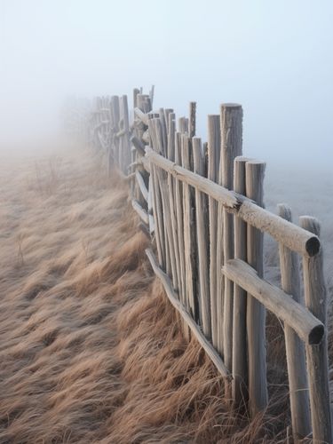 Plakat z serii pejzaże zatytułowany Mgła nad Wydmami. Prezentuje on eteryczny widok na drewniane ogrodzenie, które wiedzie przez poszarpane, suchą trawę wydm. Delikatna mgła otula scenę, nadając jej tajemniczość i spokój, a subtelne odcienie szarości i beżu tworzą uczucie miękkości i ciepła. Ten plakat idealnie oddaje atmosferę wyciszenia i rozmyślania, sprawiając, że jest doskonałym wyborem dla przestrzeni, które mają na celu uspokojenie i relaks, jak spa, pokoje medytacyjne, czy ciche kąciki w domach. To także piękny element dekoracyjny dla wnętrz inspirowanych naturą i spokojem przyrody.