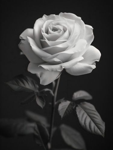 Plakat z serii wnętrza zatytułowany Płatki Róż. Plakat przedstawia ponadczasowy, monochromatyczny obraz róży. Róża, z delikatnymi i szczegółowymi płatkami, jest wyeksponowana na ciemnym tle, co wyostrza jej obrys i podkreśla subtelne niuanse jej formy. Gra światła i cienia nadaje głębi i trójwymiarowości, a ułożenie płatków w pełnym rozkwicie symbolizuje piękno i doskonałość. Liście i łodyga są skromne, ale wyraźne, dodając naturalności całej kompozycji. Plakat oddaje esencję delikatności i elegancji róży, co sprawia, że jest idealny dla każdego, kto szuka elementu dekoracyjnego o subtelnym pięknie i spokojnej, relaksującej estetyce.