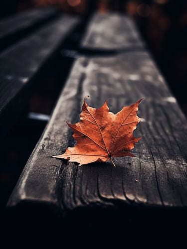 Plakat z serii natura zatytułowany Pojedynczy Liść. Ten plakat przedstawia pojedynczy, jasnobrązowy liść klonu, spoczywający na ciemnym, drewnianym tle ławki parkowej. Głębokie, nasycone kolory i wyraźny kontrast między liściem a ciemnym tłem, wywołują uczucie intymności i refleksji. Idealny dla przestrzeni, które chcą oddać hołd zmienności sezonów i subtelnemu pięknu natury, ten plakat wprowadza ciepło i spokój do każdego domu, biura, czy miejsca publicznego, zachęcając do chwili zadumy i spokoju.