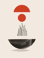 Plakat z serii boho zatytułowany Półokrągła Forma.Na tej grafike zmysłowe, geometryczne kształty tworzą obraz, który równie dobrze może być interpretacją wschodu słońca, jak i abstrakcyjnym przedstawieniem równowagi w przyrodzie. Półokrągła, czerwona forma nad czarną, pionową linią może sugerować słońce wschodzące nad cichym jeziorem, a czerwony krąg pośrodku może być metaforą istoty życia. Duża, ciemna forma na dole to ziemia lub możliwe odbicie, a całość kreuje uczucie pełni i harmonii.Plakat wprowadzi do wnętrza poczucie spokoju i wyważenia. Jest idealny dla tych, którzy chcą dodać do swojej przestrzeni element medytacyjny, pobudzający do refleksji. Doskonale pasuje do minimalistycznych salonów, biur, a także jako element zen w sypialniach, wprowadzając atmosferę oczyszczenia i wewnętrznej równowagi.