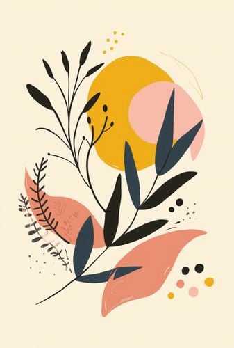 Plakat z serii minimalistyczne zatytułowany Szept Przyrody. Prezentuje on subtelny urok naturalnych elementów, które zostały zredukowane do esencji form i kolorów. Delikatna paleta beżu, różu, złota i głębokiej czerni tworzy miękkie tło dla dynamicznych kształtów roślinnych, które wydają się swobodnie tańczyć w ciepłym świetle. Abstrakcyjne kompozycje liści i pędów są połączeniem spontaniczności i kontrolowanej elegancji, wprowadzając wyciszającą atmosferę do każdej przestrzeni. Ten plakat to doskonały wybór dla tych, którzy pragną wprowadzić do swojego otoczenia odrobinę natury w formie nowoczesnej i stonowanej sztuki. Idealnie nadaje się do salonu, sypialni czy biura, gdzie może stanowić spokojny punkt centralny lub dyskretny akcent dekoracyjny.