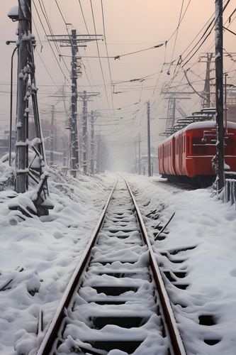 Plakat z serii pejzaże zatytułowany Podróż po Torach. Ten urokliwy plakat przedstawia zasypaną śniegiem linię kolejową, która znika w mlecznej zimowej mgiełce. Czerwony wagon kolejowy dodaje kolorystycznego akcentu do monochromatycznej scenerii, a zgeometryzowane słupy telegraficzne prowadzą oko w głąb perspektywy. Plakat wywołuje nostalgiczne uczucie i jest idealny dla tych, którzy tęsknią za spokojem zimowego pejzażu. Doskonały do zawieszenia w salonie, biurze, czy w przestrzeniach publicznych, gdzie może zachęcać do refleksji i zapewniać poczucie ukojenia.