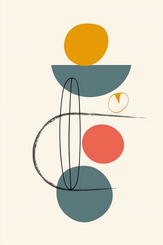 Plakat z serii boho zatytułowany Równe Kompozycje.Plakat ten czerpie z koncepcji równowagi w sztuce, ukazując złożone kształty i kolory. Kulista forma w odcieniu musztardowym spoczywa na większej, niebieskawej powierzchni, a wszystko to jest podparte przez delikatne linie i kształty, które zdają się być w ruchu. Malutkie serce w odcieniu pomarańczowym dodaje delikatnego akcentu, a ciepłe i spokojne kolory komponują się w wizualną poezję. Ten plakat wniesie harmonię i subtelny dynamizm do każdego nowoczesnego wnętrza, pasując do przestrzeni, które cenią sobie prostotę i wyrafinowanie. Jego uniwersalność sprawdzi się w domowych salonach, biurach, a także w przestrzeniach publicznych takich jak kawiarnie czy lobby, gdzie sztuka ma za zadanie uspokajać i inspirować.