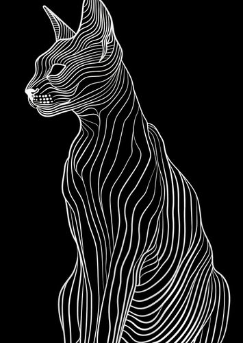 Plakat z serii abstrakcja zatytułowany Minimalny Kontur prezentuje minimalistyczny i stylowy wizerunek kota, wykonany w technice linii konturowych. Czyste, białe linie o zróżnicowanej grubości tworzą sylwetkę kota na jednolitym, czarnym tle, dając efekt elegancji i prostoty. Kompozycja skupia się na gracją i wyrafinowaną postawę kota, z wyraźnie zaznaczonymi uszami, oczami i kształtem ciała. Całość tworzy hipnotyzujący obraz, który jest zarazem współczesny i ponadczasowy, idealny dla miłośników minimalizmu, a także dla tych, którzy cenią sobie kreatywne podejście do tradycyjnego portretowania zwierząt. Plakat ten świetnie wkomponuje się w nowoczesne wnętrza, stanowiąc subtelny, ale wyrazisty akcent dekoracyjny.