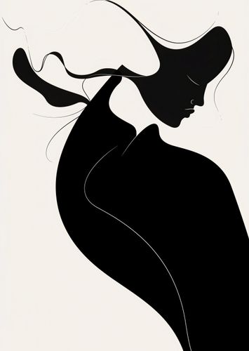 Plakat z serii minimalistyczne zatytułowany Redukcja do Zarysu.Na tym obrazie mamy przedstawiony minimalistyczny, ale wyrafinowany portret kobiety. Czarne i białe barwy stworzyły silny kontrast, a użycie wyłącznie tych dwóch odcieni nadaje dziełu ponadczasowy charakter. Postać jest zredukowana do zarysów, a jednocześnie zachowuje subtelność i gracje, szczególnie w delikatnym zarysie twarzy i falowaniu włosów. Ta praca może być interpretowana jako hołd dla klasycznej piękności i elegancji, oddanej w prostym, lecz potężnym wizualnie.