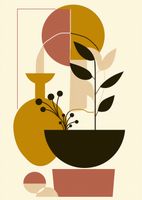 Plakat z serii minimalistyczne zatytułowany Wielkość Natury. Zaprezentowana jest tutaj elegancka kompozycja roślin w prostym naczyniu, zestawiona z geometrycznymi blokami kolorów w ciepłej, naturalnej palecie. Przywodzi ona na myśl harmonię i zorganizowaną prostotę, które można znaleźć w naturze, jak również w ludzkich tworach. Elementy w kształcie koła i półkola nadają kompozycji spokoju i równowagi, a linie i bloki kolorów tworzą poczucie głębi i struktury. Ten plakat będzie idealny do wnętrz, gdzie ceni się porządek i minimalistyczne podejście do dekoracji, wnosząc jednocześnie elementy natury i spokoju. Idealny do umieszczenia w przestrzeniach takich jak nowoczesne salony, eleganckie gabinety, lub jako spokojne tło w przestrzeniach biurowych.