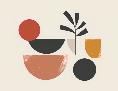 Plakat z serii boho zatytułopwany Ogród Woli.Plakat jest abstrakcyjnym przedstawieniem ogrodu, gdzie geometryczne formy i roślinne motywy łączą się w harmonijną całość. Proste kształty w odcieniach czerwieni, czerni i beżu odzwierciedlają naturalne elementy, takie jak kwiaty i słońce, a czyste linie roślinnych sylwetek wprowadzają do kompozycji żywiołowość i dynamikę. To dzieło świetnie wkomponuje się w nowoczesne, jak i tradycyjne przestrzenie, wprowadzając żywioł natury w uporządkowaną, estetyczną formę. Idealnie nadaje się do salonów, gabinetów czy pokoi relaksacyjnych, gdzie jego ciepłe barwy i proste formy mogą stworzyć inspirujące otoczenie dla odpoczynku i kreatywności.