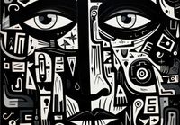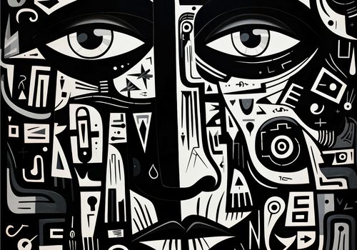 Plakat z serii abstrakcja zatytułowany Labirynt Myśli. Intrygujące oczy spoglądające z głębi obrazu są otoczone złożonymi wzorami i symbolami, które łączą się, tworząc enigmatyczny portret. Czarno-białe barwy kontrastują ze sobą, dodając dziełu intensywności i głębi. Złożoność wzorów symbolizuje skomplikowane myśli i emocje, które kryją się za ludzkim spojrzeniem. Świetnie sprawdzi się w nowoczesnych biurach, galeriach sztuki oraz w przestrzeniach przeznaczonych dla miłośników abstrakcyjnej ekspresji.