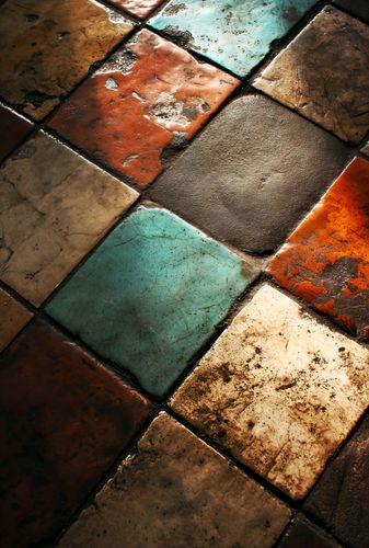 Plakat z serii wnętrza zatytułowany Ceramiczna Kompozycja, przedstawia starannie ułożone, wielokolorowe płytki ceramiczne, które razem tworzą hipnotyzującą kompozycję. Kontrastujące tekstury i kolory płytek - od gorących pomarańczy i czerwieni, przez chłodne błękity, po ziemiście beżowe i szare tony - przypominają o bogatej palecie barw, jakie oferuje natura. Subtelne odbicie światła dodaje głębi i wizualnego zainteresowania, powodując, że wzór wydaje się niemal dynamiczny. Plakat ten mógłby stanowić fascynujący element dekoracyjny w każdym wnętrzu, szczególnie w tych, które celebrują sztukę rzemiosła i naturalną paletę kolorów, jak salony, przestrzenie wspólne, a nawet galerie sztuki.