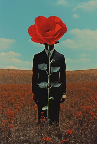 Plakat z serii abstrakcja zatytułowany Obserwator zza Maku. Ten plakat przedstawia surrealistyczny obraz człowieka z głową w formie rozkwitającego czerwonego maku, stojącego na polu pełnym kwiatów tej samej rośliny. Kompozycja gra na kontraście między ludzką postacią a bujnością natury, podkreślając połączenie człowieka z otaczającym go światem. Idealny dla przestrzeni szukających głębi artystycznej i wizualnej prowokacji, ten plakat będzie doskonałym dodatkiem do nowoczesnych salonów, galerii sztuki czy przestrzeni kreatywnych, gdzie może inspirować i wywoływać refleksję.