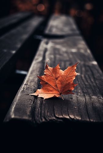 Plakat z serii natura zatytułowany Pojedynczy Liść. Ten plakat przedstawia pojedynczy, jasnobrązowy liść klonu, spoczywający na ciemnym, drewnianym tle ławki parkowej. Głębokie, nasycone kolory i wyraźny kontrast między liściem a ciemnym tłem, wywołują uczucie intymności i refleksji. Idealny dla przestrzeni, które chcą oddać hołd zmienności sezonów i subtelnemu pięknu natury, ten plakat wprowadza ciepło i spokój do każdego domu, biura, czy miejsca publicznego, zachęcając do chwili zadumy i spokoju.