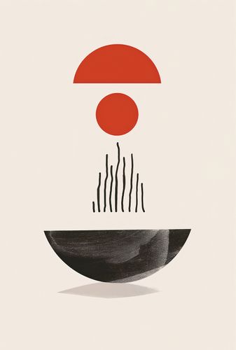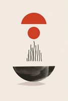 Plakat z serii boho zatytułowany Półokrągła Forma.Na tej grafike zmysłowe, geometryczne kształty tworzą obraz, który równie dobrze może być interpretacją wschodu słońca, jak i abstrakcyjnym przedstawieniem równowagi w przyrodzie. Półokrągła, czerwona forma nad czarną, pionową linią może sugerować słońce wschodzące nad cichym jeziorem, a czerwony krąg pośrodku może być metaforą istoty życia. Duża, ciemna forma na dole to ziemia lub możliwe odbicie, a całość kreuje uczucie pełni i harmonii.Plakat wprowadzi do wnętrza poczucie spokoju i wyważenia. Jest idealny dla tych, którzy chcą dodać do swojej przestrzeni element medytacyjny, pobudzający do refleksji. Doskonale pasuje do minimalistycznych salonów, biur, a także jako element zen w sypialniach, wprowadzając atmosferę oczyszczenia i wewnętrznej równowagi.