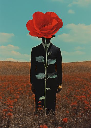 Plakat z serii abstrakcja zatytułowany Obserwator zza Maku. Ten plakat przedstawia surrealistyczny obraz człowieka z głową w formie rozkwitającego czerwonego maku, stojącego na polu pełnym kwiatów tej samej rośliny. Kompozycja gra na kontraście między ludzką postacią a bujnością natury, podkreślając połączenie człowieka z otaczającym go światem. Idealny dla przestrzeni szukających głębi artystycznej i wizualnej prowokacji, ten plakat będzie doskonałym dodatkiem do nowoczesnych salonów, galerii sztuki czy przestrzeni kreatywnych, gdzie może inspirować i wywoływać refleksję.