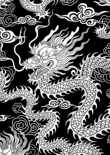Plakat z serii motywy wschodnie zatytułowany Orient przedstawia dynamiczną i szczegółową ilustrację smoka w stylu orientalnym, wypełniającego większość kompozycji na czarnym tle. Smok jest przedstawiony w tradycyjnej chińskiej estetyce, z wydłużonym ciałem pokrytym łuskami, długim, zakręconym wiatrem, ostrymi pazurami i wyrazistymi rysami twarzy. Wykorzystanie kontrastowych bieli i czerni wzmacnia graficzny charakter ilustracji, podkreślając wyrafinowane detale i płynność ruchów smoka. Jego ciało płynnie przenika przez chmury i wiry dymu, co dodaje kompozycji wrażenia głębi i ruchu. Ta praca może symbolizować moc, mądrość i ducha przemiany, które są często kojarzone ze smokami w kulturze wschodniej. Idealnie nadawałby się jako element dekoracyjny w przestrzeniach, które chcą nawiązać do azjatyckiej kultury lub dodać silny, energiczny akcent do swojego otoczenia.