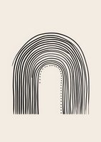 Plakat z serii boho zatytułowany Symetria Łuku. Grafika jest kwintesencją graficznej symetrii, przedstawiając hipnotyzujący motyw łuków, który wyłania się z rytmicznie powtarzających się, czarnych linii na beżowym tle. Kompozycja w formie bramy składa się z koncentrycznych półkoli, tworząc głęboką perspektywę, która przyciąga wzrok i prowadzi go ku centralnej, tajemniczej przestrzeni. Delikatne kropki podkreślają ścieżkę prowadzącą do wewnętrznego centrum, sugerując podróż ku własnej introspekcji. Ten minimalistyczny plakat będzie pasował do wnętrz o współczesnym charakterze, gdzie jego klarowna estetyka może stanowić przeciwwagę dla zgiełku codzienności, a także do przestrzeni w stylu zen, gdzie może wspomagać medytację i spokój umysłu.
