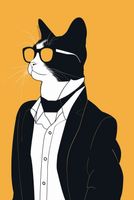 Plakat z serii abstrakcja zatytułowany Jegomość to stylizowany portret kota w ludzkim ubiorze. Charakterystyczne, czarno-białe ubarwienie kota zostało podkreślone przez elegancki, czarny garnitur z białą koszulą oraz modnymi, żółtymi okularami, które dodają postaci wyrafinowanego uroku. Tło w intensywnym odcieniu musztardy idealnie komponuje się z całością, nadając plakatowi ciepły i wyrazisty charakter. Silny profil kota, wyraźne linie i minimalistyczne podejście do szczegółów czynią ten plakat zarówno zabawnym, jak i eleganckim, idealnym do przestrzeni, które cenią sobie humor i styl, takich jak nowoczesne biura, domowe biblioteki czy saloniki.