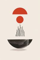 Plakat z serii boho zatytułowany Półokrągła Forma.Na tej grafike zmysłowe, geometryczne kształty tworzą obraz, który równie dobrze może być interpretacją wschodu słońca, jak i abstrakcyjnym przedstawieniem równowagi w przyrodzie. Półokrągła, czerwona forma nad czarną, pionową linią może sugerować słońce wschodzące nad cichym jeziorem, a czerwony krąg pośrodku może być metaforą istoty życia. Duża, ciemna forma na dole to ziemia lub możliwe odbicie, a całość kreuje uczucie pełni i harmonii.Plakat wprowadzi do wnętrza poczucie spokoju i wyważenia. Jest idealny dla tych, którzy chcą dodać do swojej przestrzeni element medytacyjny, pobudzający do refleksji. Doskonale pasuje do minimalistycznych salonów, biur, a także jako element zen w sypialniach, wprowadzając atmosferę oczyszczenia i wewnętrznej równowagi.