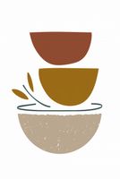 Plakat z serii boho zatytułowany Spójna Forma. Grafika przedstawia studium geometrycznej prostoty i spokoju. Półkoliste formy w odcieniach brązu, musztardowego i beżu, układają się w delikatnie zbalansowaną kompozycję, która może przywodzić na myśl przekroje naturalnych elementów lub subtelne, artystyczne interpretacje krajobrazu. Smukłe linie przypominające rośliny dodają lekkości i dynamiki, tworząc przyjemne dla oka połączenie form organicznych i geometrycznych.Dzieło świetnie wpisze się w ciepłe, jasne przestrzenie, takie jak przytulne kawiarnie, skandynawskie wnętrza lub jako element wykończeniowy w jadalniach, gdzie może dodać harmonii i naturalnego spokoju. Jest to doskonały wybór dla tych, którzy cenią sobie spokojną estetykę i chcą wnieść odrobinę zrównoważonej, wizualnej przyjemności do swojego otoczenia.