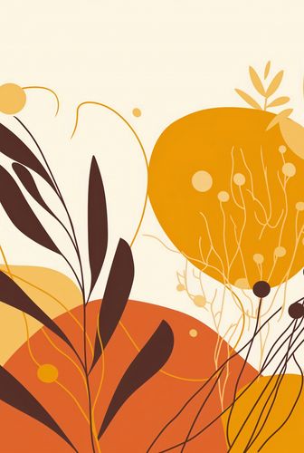 Plakat z serii minimalistyczne zatytułowany Szept Lasu. Spokojna i równoważąca kompozycja przedstawia zbiór roślin, wśród których przeważają delikatne i wydłużone liście. Kolorystyka grafiki oscyluje wokół ciepłych odcieni żółci, pomarańczy i brązu, co nadaje ilustracji przytulnego i spokojnego nastroju.Ta grafika będzie doskonale komponować się w przestrzeniach, gdzie chcemy stworzyć oazę spokoju, sprzyjającą relaksacji i odprężeniu. Może być wspaniałym dodatkiem do sypialni lub salonu, gdzie ciepłe barwy i natura mają pozytywny wpływ na samopoczucie.
