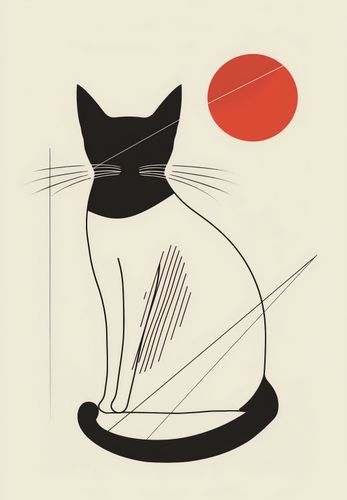 Plakat z serii minimalistyczne zatytułowany Czerwony Krąg. Plakat prezentuje stylizowaną sylwetkę czarnego kota, który siedzi tyłem, skupiony na czerwonym kręgu, który może symbolizować zachodzące słońce. Prostota formy i kontrastowe barwy tworzą spokojną, lecz sugestywną kompozycję. Cień kota i jego wyraziste wąsy dodają ilustracji charakteru i głębi. To dzieło sztuki jest idealne dla tych, którzy cenią sobie zarówno minimalizm, jak i symboliczne znaczenie w swoim otoczeniu. Plakat będzie pięknym akcentem w każdej przestrzeni, wnosząc odrobinę tajemnicy i spokoju. Idealnie pasuje do pomieszczeń o współczesnym wystroju, takich jak nowoczesne salony, sypialnie lub domowe biura, a także do miejsc, które są sanktuarium relaksu i kontemplacji.