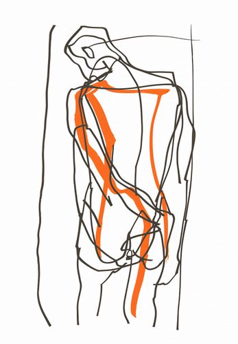 Plakat z serii minimalistyczne zatytułowany Ruch i Akcent. Grafika wykorzystuje dynamiczny zarys, aby przekazać poczucie ruchu i energii. Grube, czarne linie szkicują formę, która może być interpretowana jako postać w ruchu, a intensywne, pomarańczowe akcenty dodają dziełu dramatyzmu i głębi. Sama forma jest tylko nakreślona, pozostawiając wiele miejsca dla interpretacji widza. Całość zdaje się być złapanym w locie fragmentem większej narracji, momentem zawieszonym między akcją a spoczynkiem.Plakat wniesie do przestrzeni surową, artystyczną energię. Idealnie nada się do awangardowych przestrzeni, jak loftowe apartamenty, studia artystyczne czy nowoczesne biura, gdzie może stać się punktem zaczepienia dla oka i inspiracją do kreatywnych dyskusji.