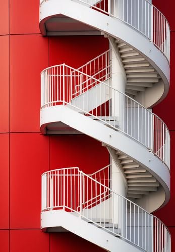 Plakat z serii wnętrza zatytułowany Schody do Niebios. Ten plakat to dynamiczne zestawienie białej, spiralnej klatki schodowej z intensywnie czerwonym tłem ściany budynku. Czyste linie, krzywe i kolorystyczny kontrast tworzą wyrafinowaną kompozycję, która łączy funkcjonalność z estetyką. Idealny dla nowoczesnych przestrzeni komercyjnych i mieszkalnych, które chcą wnieść element współczesnego designu i architektonicznej odwagi, ten plakat jest doskonałym wyborem dla miłośników designu, architektów oraz wszystkich, którzy cenią sobie wyrazistość i mocne, wizualne wrażenie.