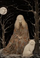 Plakat z serii wnętrza zatytułowany Stróżka Leśna. Ta eteryczna praca artystyczna ukazuje postać kobiecą, owiniętą w szatę z motywem leśnym, zatopioną w kontemplacji pod gałęziami drzew oplecionych przez śnieg i w blasku pełnego księżyca. Jej spokojna obecność i blady odcień skóry kontrastują z ciemnością nocy, a towarzyszący jej biały wilk dodaje elementu dzikości i tajemniczości. Plakat oddaje uczucie spokoju i jedności z naturą, a jednocześnie wzbudza ciekawość dotyczącą ukrytych opowieści i starych legend. Idealny dla miłośników fantastyki, mitologii, oraz tych, którzy pragną wprowadzić do swojego wnętrza elementy oniryczne i magiczne.