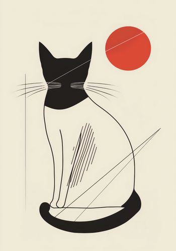 Plakat z serii minimalistyczne zatytułowany Czerwony Krąg. Plakat prezentuje stylizowaną sylwetkę czarnego kota, który siedzi tyłem, skupiony na czerwonym kręgu, który może symbolizować zachodzące słońce. Prostota formy i kontrastowe barwy tworzą spokojną, lecz sugestywną kompozycję. Cień kota i jego wyraziste wąsy dodają ilustracji charakteru i głębi. To dzieło sztuki jest idealne dla tych, którzy cenią sobie zarówno minimalizm, jak i symboliczne znaczenie w swoim otoczeniu. Plakat będzie pięknym akcentem w każdej przestrzeni, wnosząc odrobinę tajemnicy i spokoju. Idealnie pasuje do pomieszczeń o współczesnym wystroju, takich jak nowoczesne salony, sypialnie lub domowe biura, a także do miejsc, które są sanktuarium relaksu i kontemplacji.