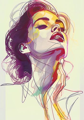 Plakat z serii abstrakcja zatytułowany Płynność. Ten dynamiczny plakat przedstawia abstrakcyjny portret kobiety, gdzie płynne linie i żywe kolory mieszają się, tworząc wrażenie ruchu i emocji. Splot różnorodnych barw, od pastelowych odcieni po intensywne akcenty, oddaje energię i pasję, które emanują z postaci. Plakat może symbolizować wolność wyrazu i siłę kobiecości, będąc jednocześnie nowoczesnym dziełem sztuki. Idealnie nadaje się do przestrzeni ożywionych i pełnych życia, takich jak salony artystyczne, modowe atelier, czy współczesne mieszkania.