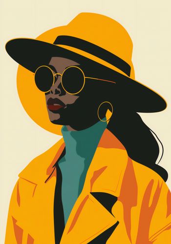 Plakat z serii abstrakcja zatytułowany Żółta Stylowość. Grafika ta portretuje postać kobiety w stylowym, żółtym kapeluszu i okularach przeciwsłonecznych, którego wyraziste linie i bloki kolorów tworzą silny, graficzny obraz. Odcienie żółci, połączone z subtelnymi akcentami zieleni i czerni, nadają kompozycji nowoczesnego i śmiałego charakteru. Postać emanuje pewnością siebie i wyrafinowaniem, co czyni ten plakat idealnym elementem dekoracyjnym dla przestrzeni o współczesnym designie, a także dla miejsca, które chce dodać akcent miejskiej elegancji. Idealny dla salonów modowych, gabinetów kosmetycznych czy nowoczesnych biur kreatywnych.
