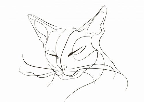 Plakat z serii wnętrza zatytułowany Linijny Kot. Prezentuje minimalistyczny, jednoliniowy rysunek kota. Sylwetka zwierzęcia została zredukowana do kilku płynnych linii, które z gracją oddają kształt głowy, uszu i rysy twarzy, w tym oczy i nos. Styl ten jest znany z tego, że w elegancki sposób uchwyci esencję swojego przedmiotu przy minimalnym użyciu detali. Tło plakatu jest czyste i jasne, co pozwala zarysom kota stać się dominującym elementem. Ten rodzaj sztuki idealnie nadawałby się do nowoczesnego wnętrza, które ceni sobie elegancję i prostotę, i może przyciągać wzrok jako subtelny, ale wyrafinowany element dekoracyjny.
